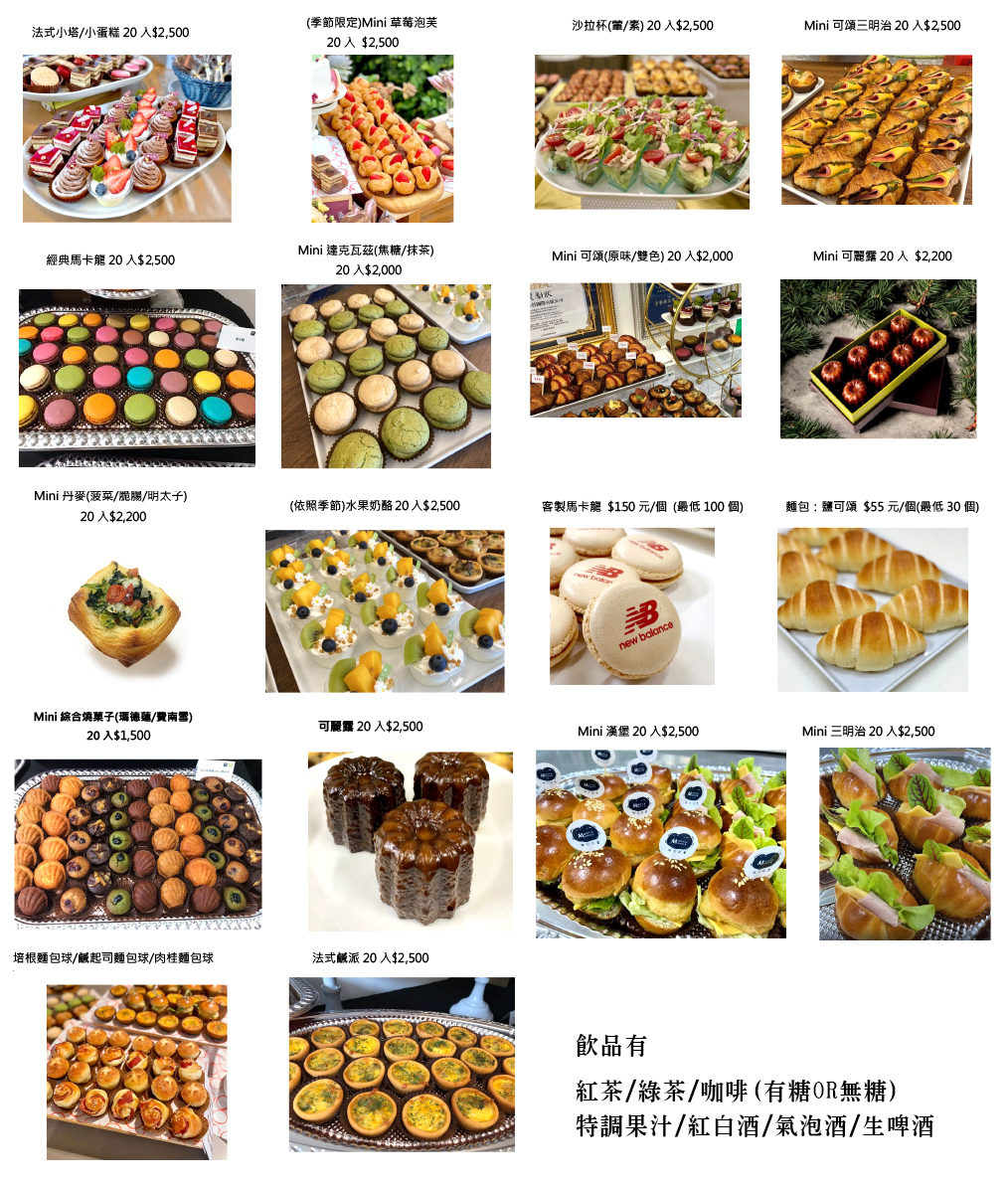 提供精緻的茶會點心20位起訂、小型聚會與會議活動專用的餐點拼盤。無論是甜點、鹹點或乳酪塔,我們都為您設計適量且風味豐富的組合。LINE ID:@370dbkvu